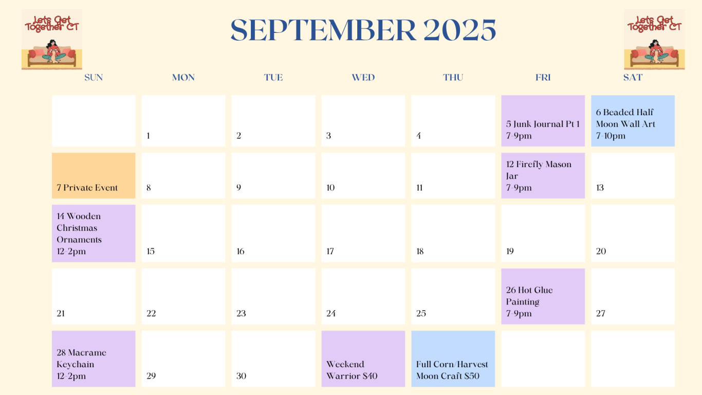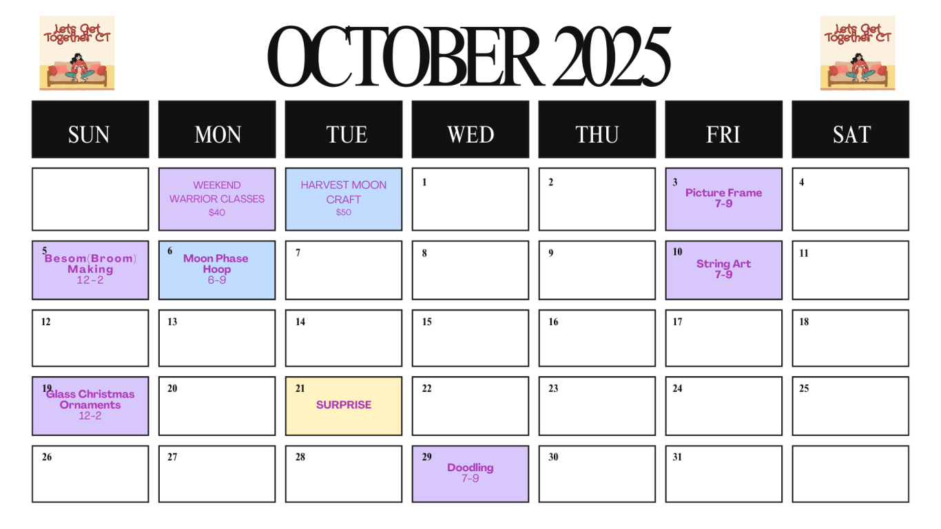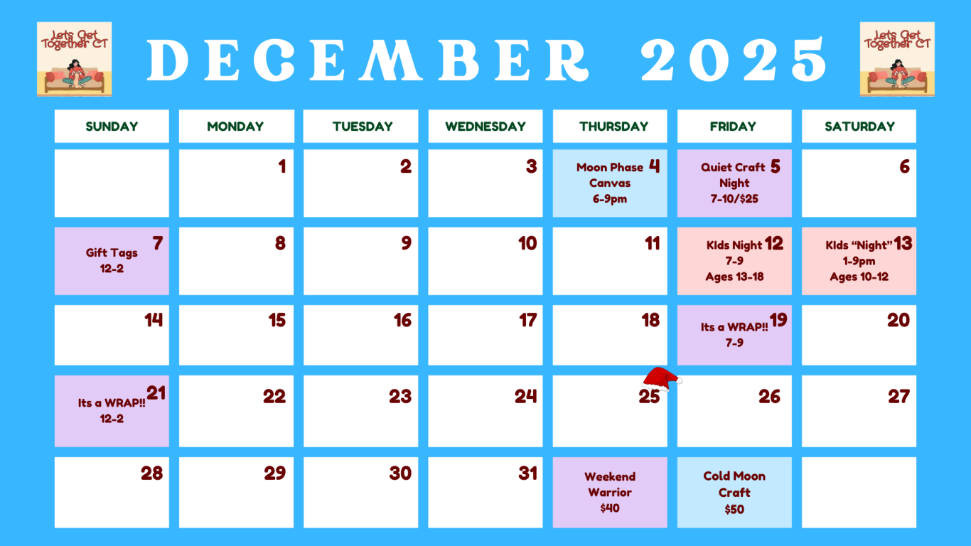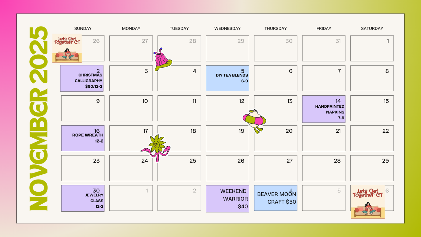 This month's Get Togethers will balance prepping for the holidays and time just for us.